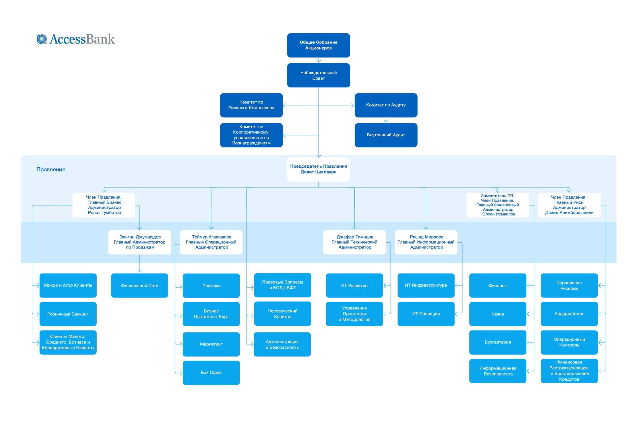Давит Циклаури имеет более чем 20-летний опыт работы в финансовом секторе. До своего назначения в AccessBank, он работал Non-Executive Директором в HamkorBank и Kompanion Bank-ах, а также был Членом Инвестиционного Совета Пенсионного Фонда Грузии.
